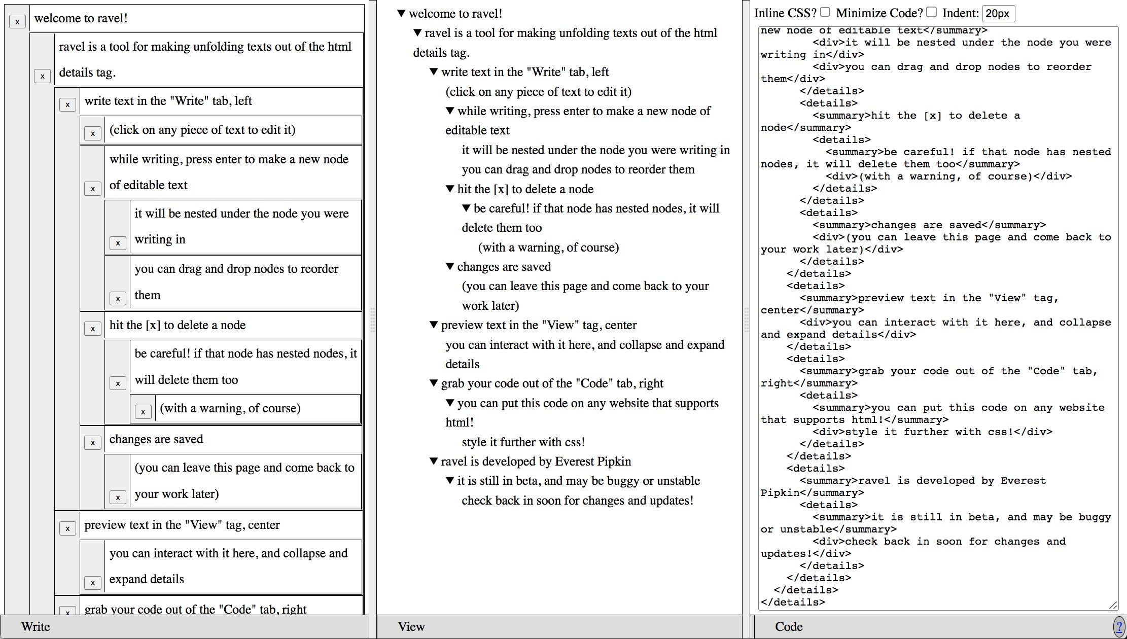 🡱 Ravel est un projet réalisé par Everest Pipkin qui exploite la balise "summary".