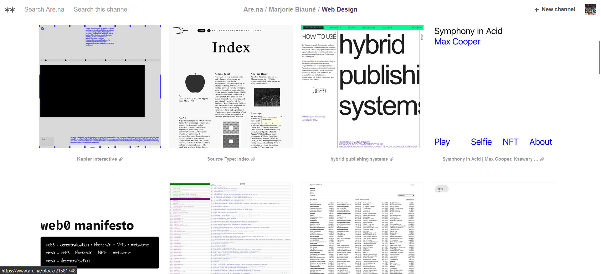 🡱 Are.na est un endroit pour enregistrer du contenu, créer des collections au fil du temps et connecter des idées. En privé ou avec d'autres personnes.
